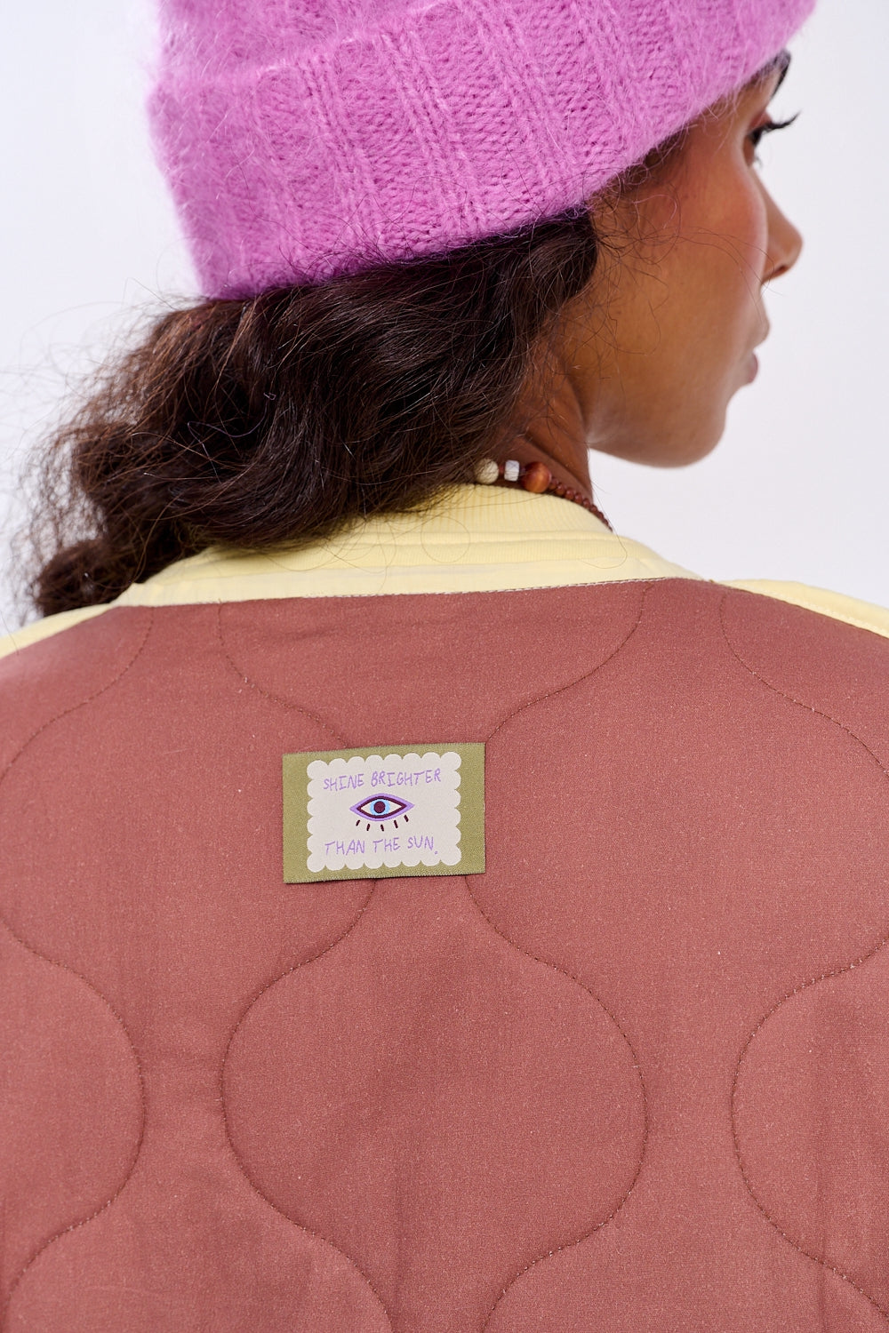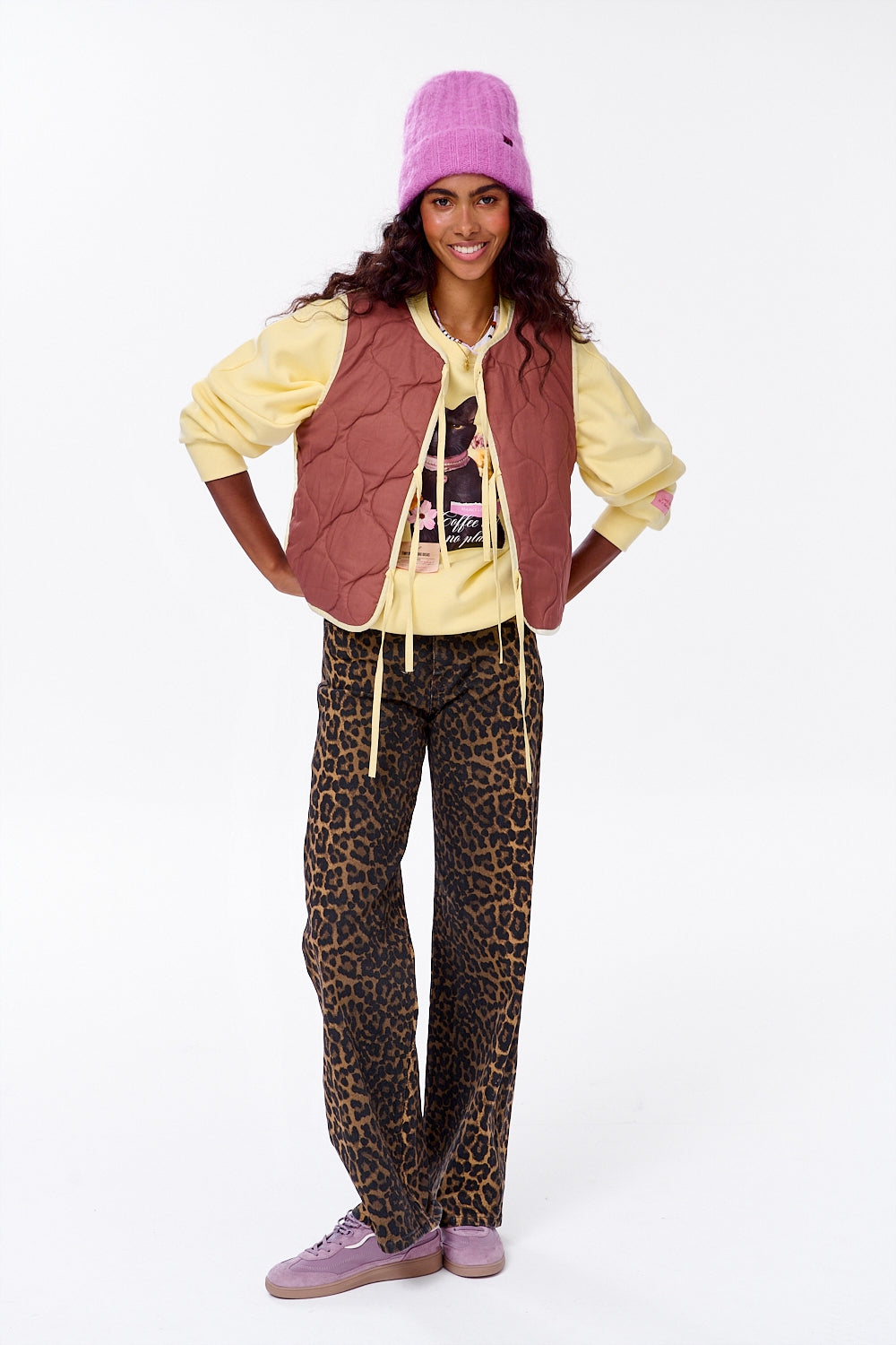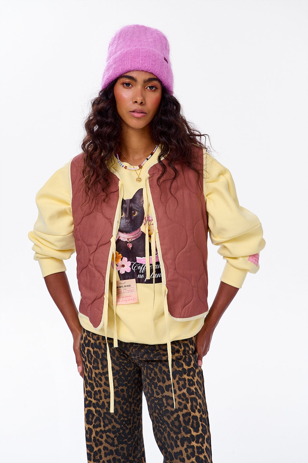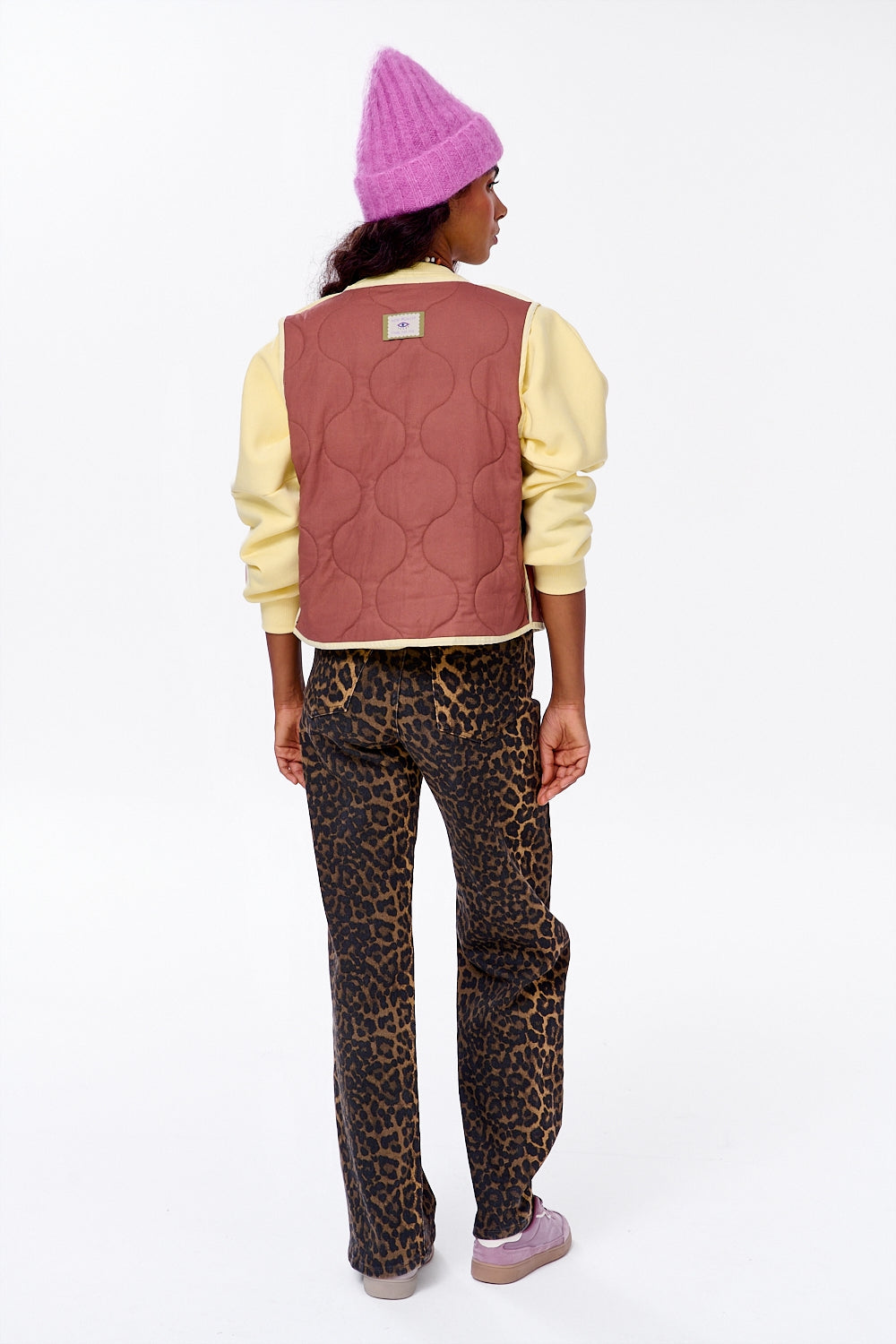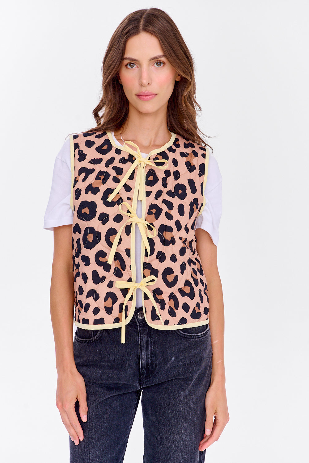 Kamizelka dwustronna Urban Safari do energetycznego połączenia dzikości i komfortu – model dwustronny, który pozwolił na błyskawiczną zmianę charakteru charakteru. Z jednej strony kamizelka zachwycająca efektem printem w cętki, inspirowana dziką naturą, podkreślonym kontrastującym żółtymi lamówkami. Z drugiej strony – stonowany, czekoladowobrązowy odcień z subtelnymi przeszyciami, który pozwala na spojrzenie i pozwala na bardziej klasyczne stylizacje. Obie wersje zawierają praktyczne powiązania z przodu, które podkręcają nonszalancki charakter kamizelki.